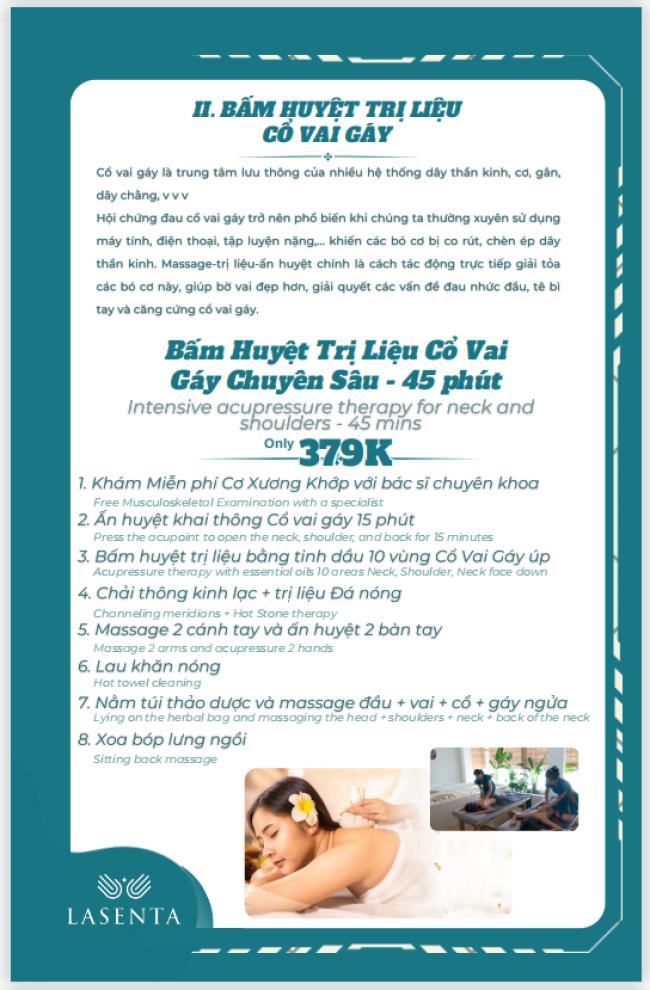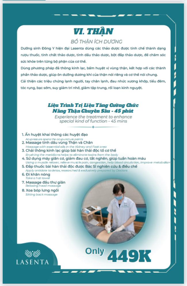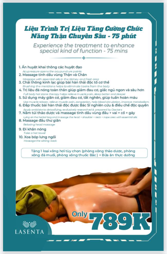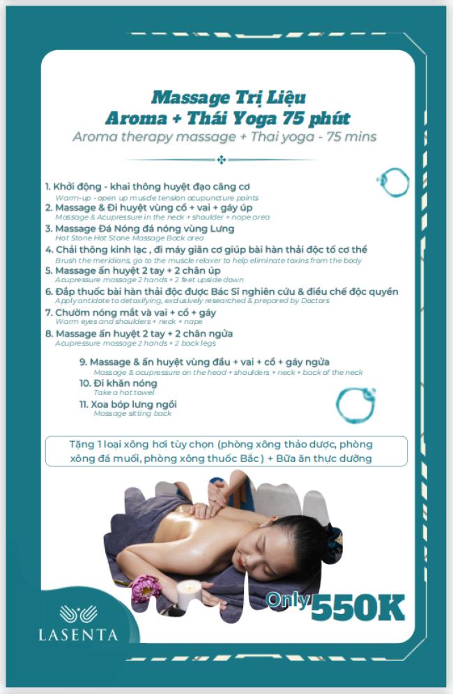 Lasenta, 스파 및 마사지 복합체는 동양 의학 치료를 통합하여 마사지, 스팀 목욕, 피부 관리, 삼지압, 전통 의학 치료, 약초 목욕, 자쿠지 스파 등과 같은 일류 서비스를 제공합니다.