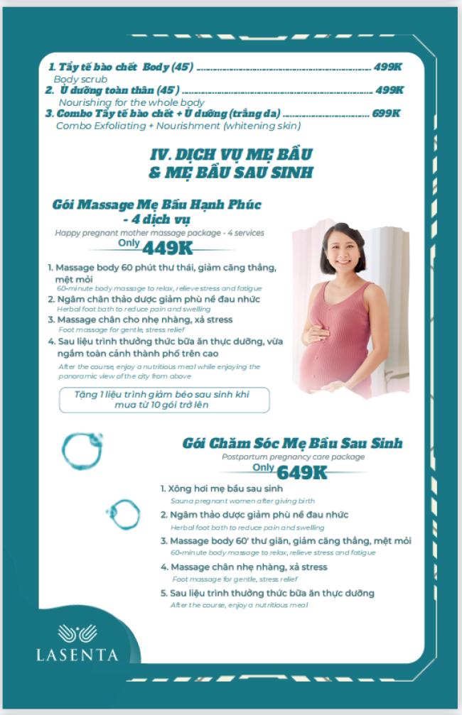 - 임산부 마사지: 임산부를 위해 전문적으로 제공되는 마사지입니다.